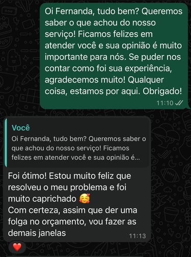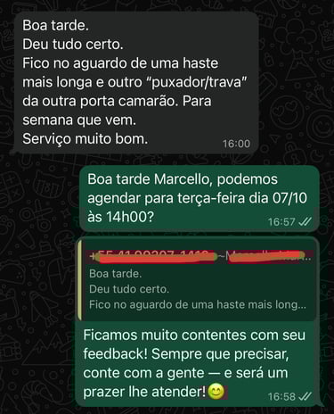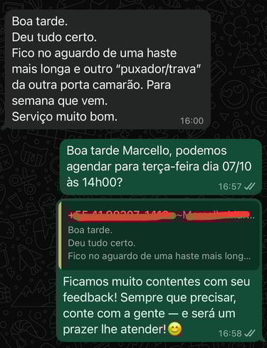 - Lubrificação e Ajustes: Verificamos e ajustamos todas as partes móveis, como dobradiças, roldanas e fechaduras, garantindo um funcionamento suave e sem ruídos.