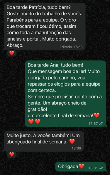 Estamos à disposição durante esses horários para atender suas necessidades de vedação e manutenção de esquadrias de alumínio.